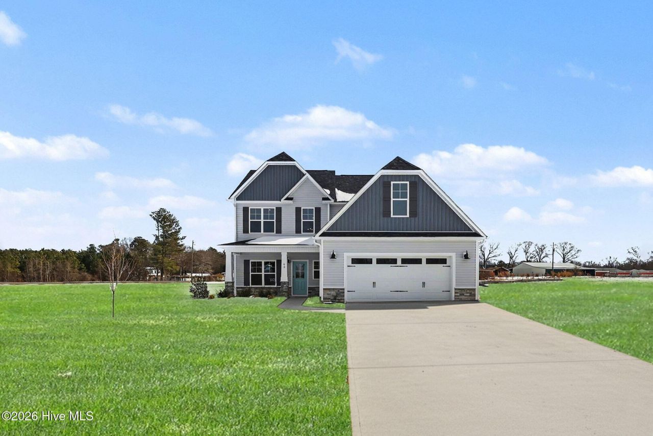 Up to 15k seller concessions if using Liberty Ridge Lending. Discover the Naples Floor Plan, a beautiful 2-story home featuring 4 bedrooms and 3.5 baths, crafted by JSJ Builders in the vibrant Lucas Park Subdivision. Nestled in the sought-after Brogden Community within the Princeton School District, this location is just minutes from I-95 and the upcoming I-42 (Highway 70), ensuring easy access from Raleigh to the Coast and convenient travel in both directions. Nearby, the master-planned community of Eastfield Crossing provides even more amenities and conveniences. The main level welcomes you with a formal dining area adorned with a coffered ceiling, wainscotting, and an open living and kitchen space equipped with granite countertops, island, and a spacious living room featuring a cozy gas fireplace. You'll also find a generous first-floor owner's suite complete with an ensuite bathroom, along with a laundry room conveniently located near the garage, plus a half bath and mud room. Venture upstairs to discover three ample bedrooms, each with walk-in closets, plus two full bath, and a media room, offering plenty of room for relaxation and entertainment. Contact us today to make Lucas Park your 'home-sweet-home,' where rural charm meets urban convenience!